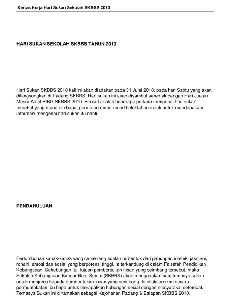 Contoh Kertas Kerja Sukan Sekolah Pdf