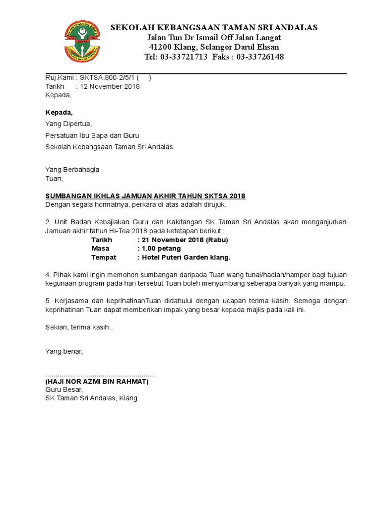 Surat Mohon Sumbangan Hari Sukan Pdf