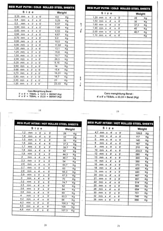 Tabel Berat Plat Besi Tabel Berat Plat Putih Tabel Berat Plat Kapal Pt Abadi Metal Utama